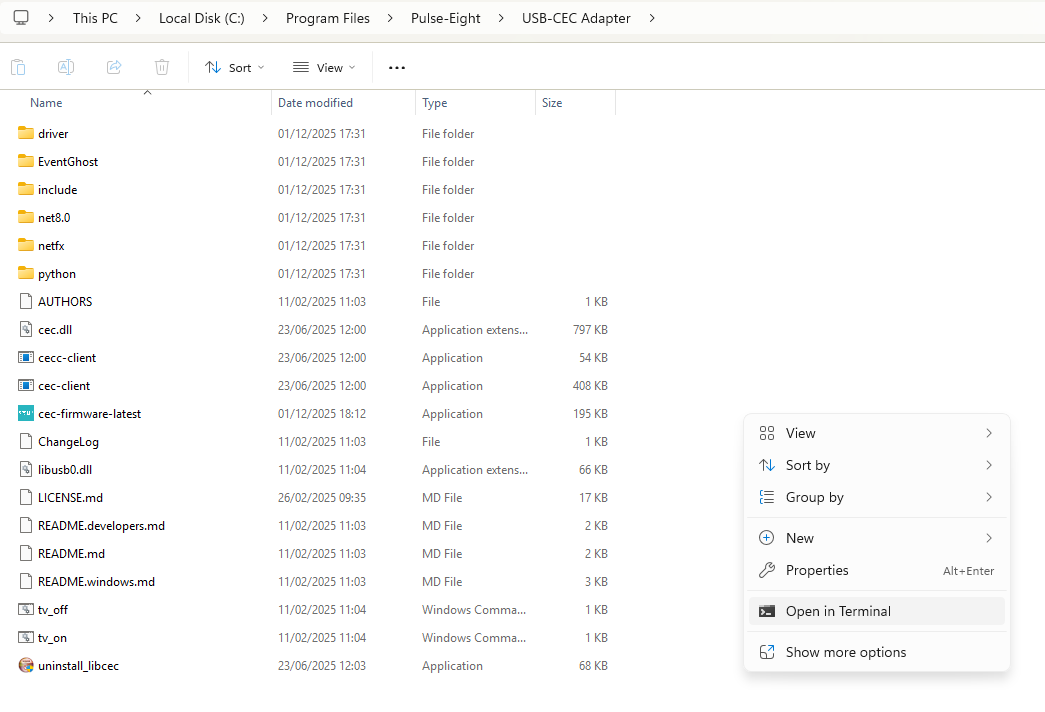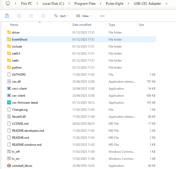 To send custom CEC commands from PC to TV through CEC adapter, you will need to install the CEC client. This is an exe file that is included in the libCEC and Windows driver package.