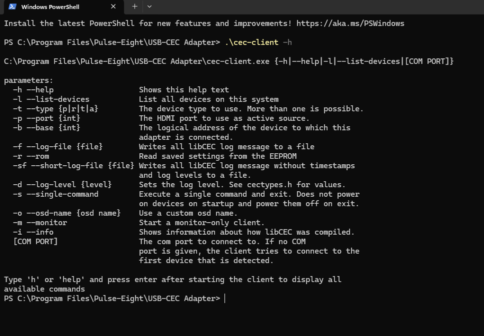 Open a cmd prompt in this folder, and run type .\cec-client.exe -h