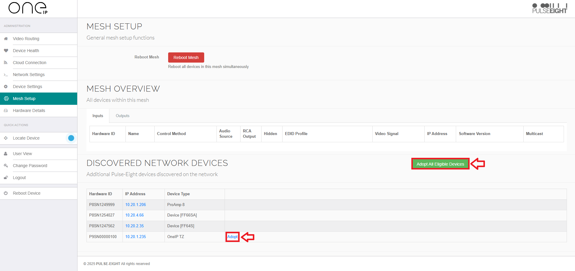 In this article we will show the process of adding unadopted OneIP devices into your OneIP mesh.
