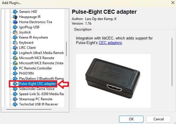 - Look for "Pulse-Eight USB-CEC Adapter" in the plugin list